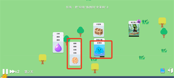 将获得的经验卡拖动到史莱姆卡上,即可为史莱姆提供经验,帮助它提升等级。