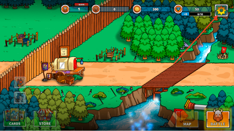 1、下载安装后打开游戏进入主页,点击右上角设置。