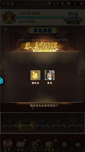 2、然后我们可以通过游戏内的招募或者开宝箱来获得武将;