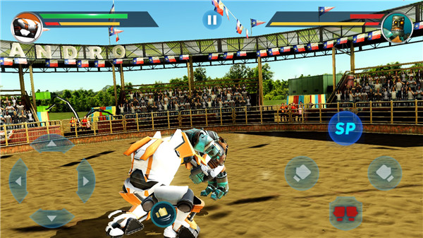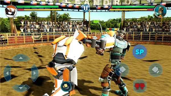 游戏的操作遵循经典的虚拟按键方式,简单易懂。点击屏幕上的方向键,机器人就能前后左右灵活移动。攻击键控制拳打脚踢,组合键可以打出连续技。