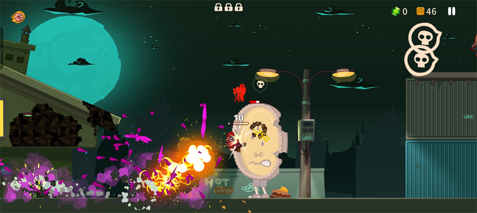 1、 创意设定:将甜美零食塑造成凶残敌人,反差萌十足的画风与诙谐剧情,营造出轻松幽默又不失紧张的游戏氛围。
