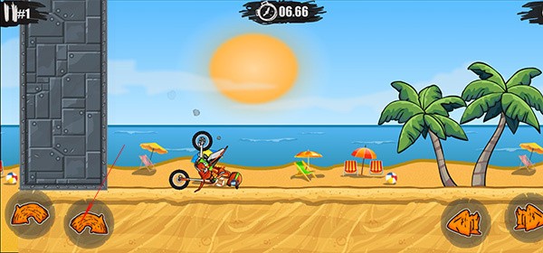 3、玩家需要利用好加速和控制车辆翘头的两个按钮,闯过重重障碍;