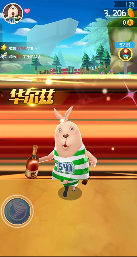 4、 变身与载具:游戏中设有变身机制,兔子可短暂变为巨人摧毁障碍,或驾驶汽车、躺在火箭上,体验不同的逃亡方式。