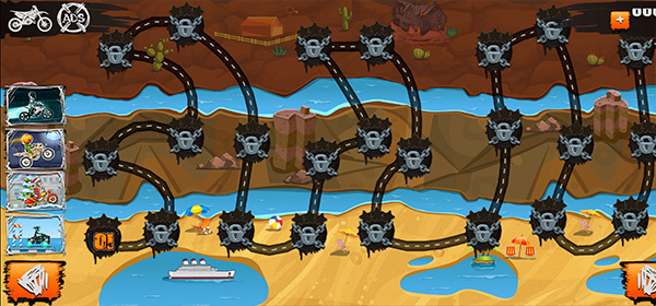 前轮抬起在空中定住,后轮滑行擦着地面过弯,飞跃断崖时来一个360度旋转。Sick特技和疯狂技巧,让你在闯关的同时还能秀得飞起。不只是为了帅,有些关卡不靠特技根本过不去。翻转、翘头、离地滑行,每一招都是过关的钥匙。