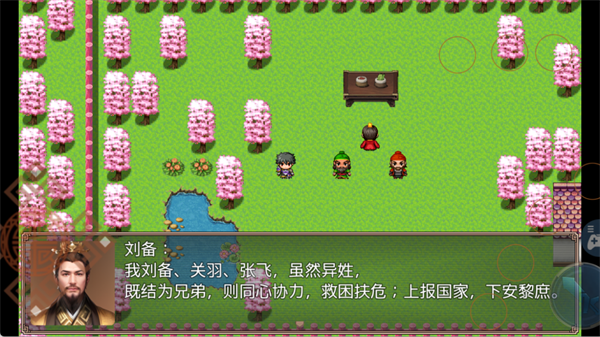 游戏以三国时期桃园三结义的热血故事为背景,讲述了刘备、关羽、张飞三位义士在乱世中共图大业的传奇历程。从涿郡街头的一次相遇,到桃花树下焚香结拜,那份“不求同年同月同日生,但求同年同月同日死”的誓言,至今读来仍让人心潮澎湃。游戏沿袭了这些经典情节,却在玩法上做出了全新突破——抛弃传统回合制的束缚,采用即时战斗机制,让玩家能够在激烈的战场上灵活操作,体验真正的三国战场紧张感。刀光剑影之间,每一秒都在考验你的反应与判断。