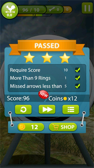 3、松开手指即可发射弓箭,可以看到自己的得分。
