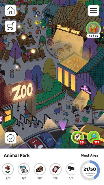 每张地图上的隐藏对象都找齐了,下一张地图就向你敞开。从宁静的乡村到热闹的港口,从幽暗的地下城到繁华的都市街道,一张接一张地解锁。收集越多,能去的地方就越多。