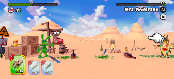 3、游戏采用回合制对战,玩家需使用武器来瞄准对手射击;