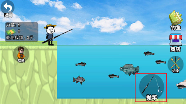 3、点击屏幕右下角的【抛竿】按钮,将自己的鱼饵投入到水中;