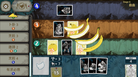 3.借助这些卡牌的力量,你能够快速提升族群实力,一步步壮大自己的猩猩部落。