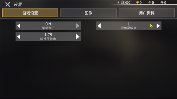 1、打开美国射手,点击右上角的设置,可以调整游戏灵敏度、图像画质,以及设置用户资料;