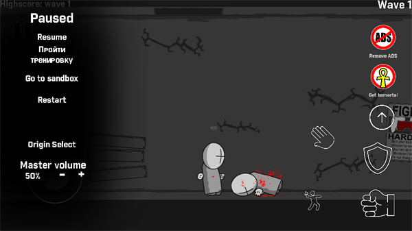 3、右手的手掌图标可以控制人物拾取道具,小人图标可以控制角色投掷武器,面对一些远程敌人时会需要使用这个技巧。