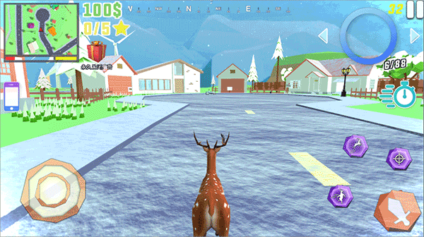 2、角色能力与策略:作为一头被赋予非凡力量的鹿,将解锁并掌握丰富多样的能力。横冲直撞的“野蛮冲撞”、引发混乱的“鹿角旋风”,其他独特技能,都需要你巧妙组合与运用,才能策略性地完成一项项破坏挑战。