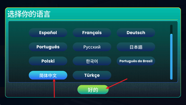 3、找到简体中文后,点击确认即可切换。