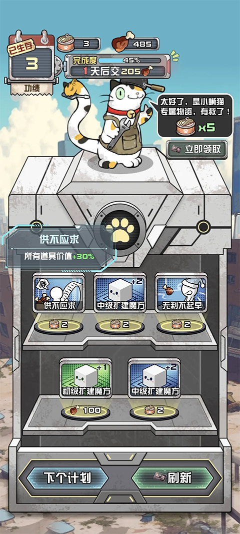 4、完成生存计划:系统定期发布如“收集指定数量鸡腿”等目标,达成后可获得奖励并推进主线剧情。
