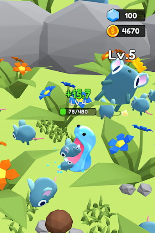 史莱姆是从很小的石子吃起的,慢慢的积累经验升级,就能吞大家伙了。