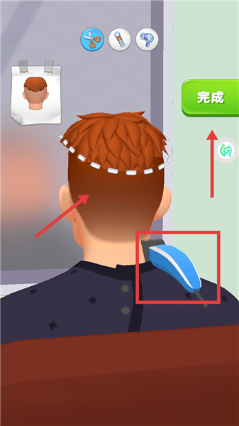 2、用推子(蓝白工具)按发型轮廓修剪,完成后点“完成”。
