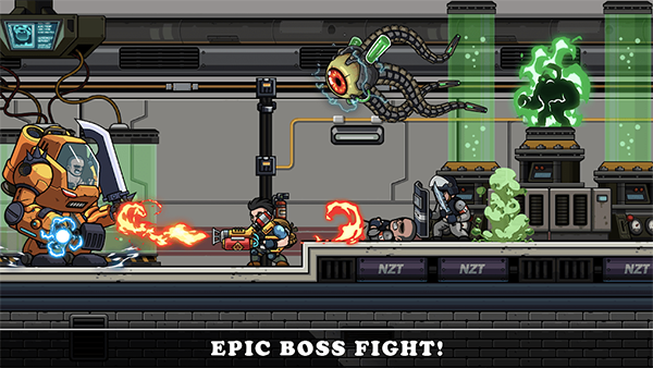 1、横版闯关推进:玩家从左至右推进关卡,消灭沿途敌人,躲避陷阱与子弹,最终击败关底BOSS完成任务,节奏紧凑,单局时长约10-15分钟。