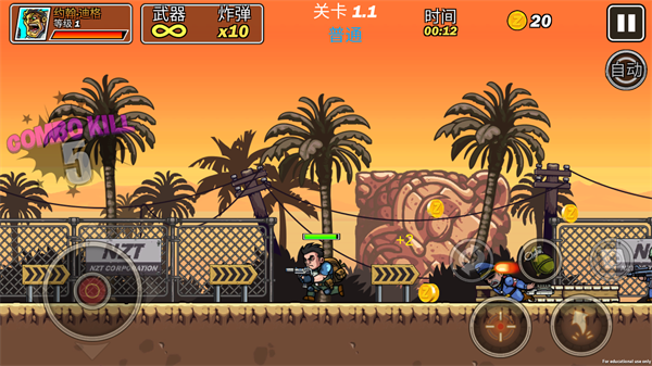 4、丰富关卡设计:包含多个主题战场,如丛林、堡垒、城市废墟等,每关设有隐藏路径、人质救援点与强力BOSS,提升探索乐趣与重复可玩性。