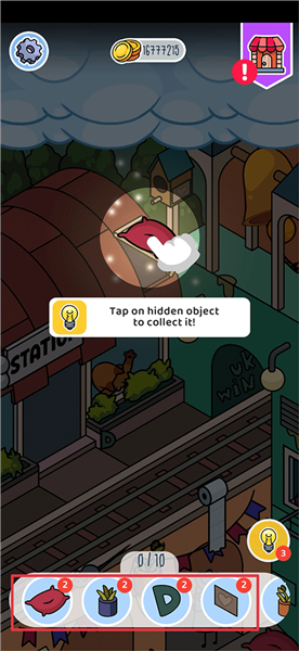5、但是有的关卡下方中的物品只会告诉你物品的形状,这时玩家就需要发挥自己的眼力在地图中需要相同形状的物品啦,