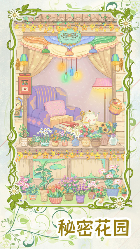3、自由装饰系统:玩家可自由装修花圃、搭建小屋、摆放家具,打造个性化秘密空间;随着评分提升,还能逐步解锁新场景与更多功能区域。